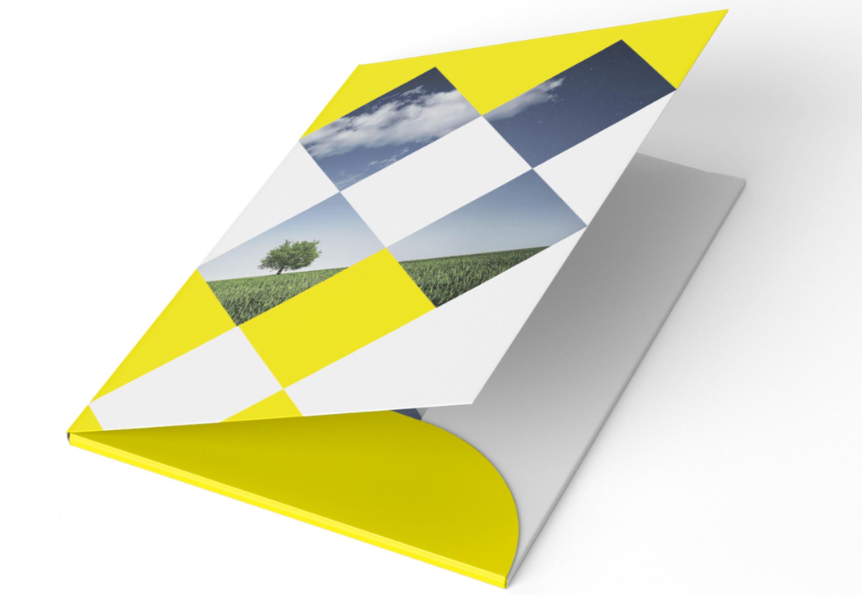 Presentation Printed folders are one of the best ways to hold, organise and promote your marketing materials. Use them to introduce new products or services, at events, expos or when presenting documents to clients. We print our Standard Folders on a 350gsm stock for a high-quality look and feel, then we laminate it — matt or gloss to your liking.